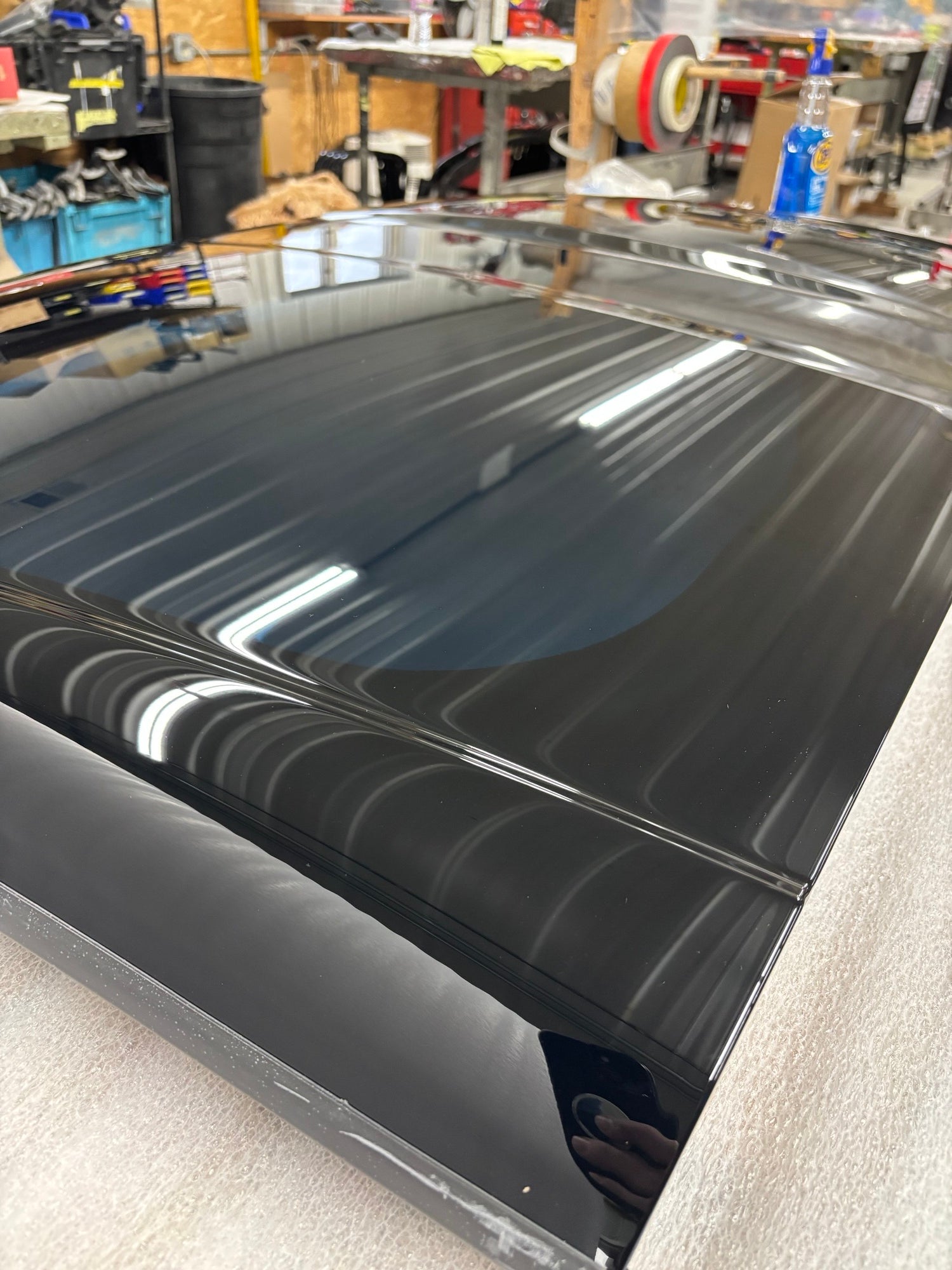 This roof panel was part of a "remaining stock" buyout from GM. It is new, complete, and in perfect condition. We popped the right font corner cap off to show the factory sticker. Roof will be shipped insured with protective film, wrapped in polyfoam, in a double corrugated box with foam inserts.